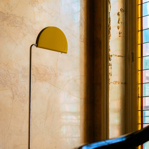 Le Mezzaluna Floor est un lampadaire légendaire, né en 1975 sous le crayon de Bruno Gecchelin et réédité en 2024 par DCW Éditions dans une version entièrement adaptée à la technologie LED. Au sein de la galaxie des luminaires italiens des années 1970, Mezzaluna s’est imposé comme l’un des best-sellers de son époque — symbolique d’une décennie, reconnaissable entre tous. Sa tige télescopique réglable de 1841 à 2210 mm, sa tête pivotante à 80° et son variateur à coulisse intégré sur la tête de lampe lui confèrent une polyvalence et une précision remarquables. Livré avec deux filtres interchangeables permettant d’ajuster la température de couleur, il s’adapte à toutes les ambiances.