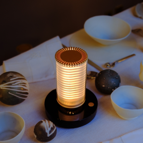 La Frechin à Table est une lampe sans fil sur batterie imaginée par Jean-Louis Frechin pour DCW Éditions. Elle offre une expérience sensorielle de l’optique entre science et magie, jouant avec les contrastes entre matérialité et immatérialité, présence, absence et révélation de la lumière. Composée de verre, de marbre et d’aluminium — des matériaux intemporels associés à une approche poétique de la technologie — elle illumine autant qu’elle irradie les espaces. Dimmable de 15 à 100% grâce à son variateur tactile, elle offre jusqu’à 20 heures d’autonomie avec des batteries 18650 remplaçables. Depuis 2022, La Lampe Frechin fait partie des collections permanentes du Centre Pompidou et du Musée des Arts Décoratifs.